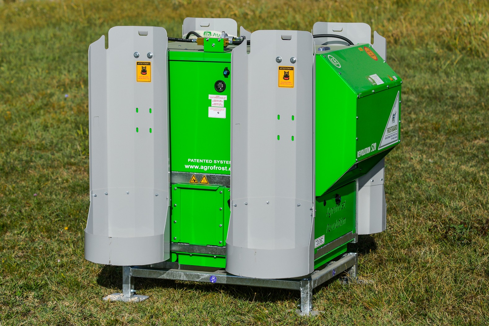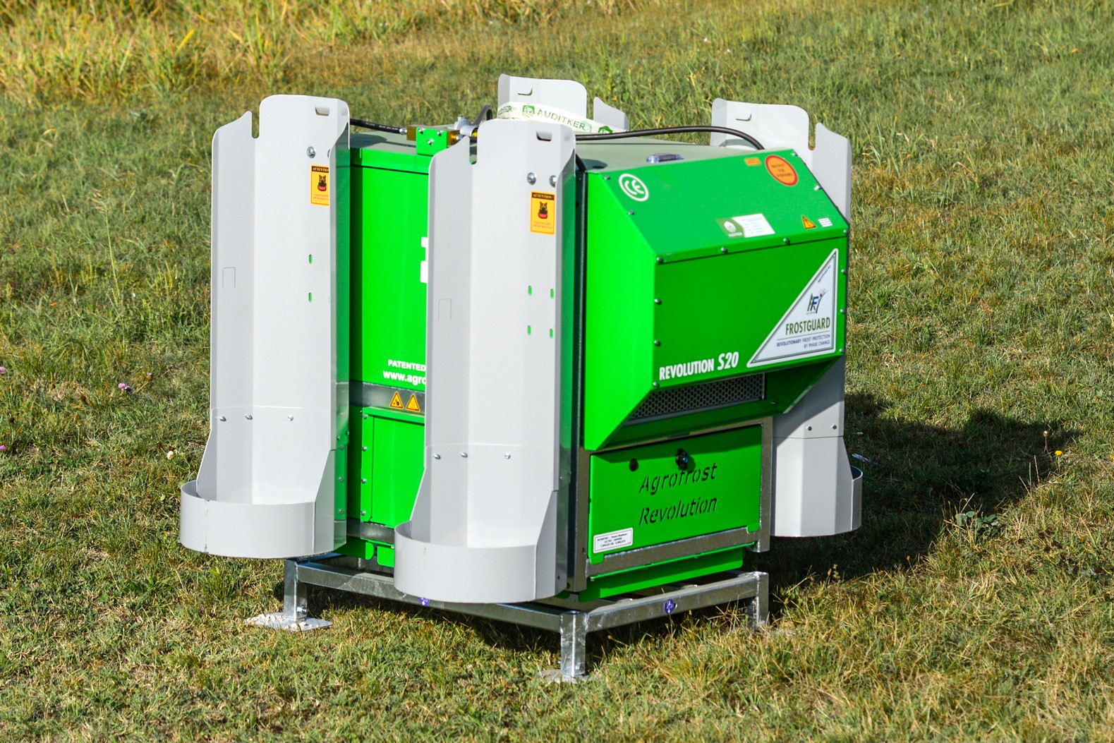 A FrostGuard telepített gázüzemű fagyvédelmi gép, amely a külső hő bejuttatás által a halmazállapotok fázisváltásai révén működik. 0,7-1 ha ovális területet képes bevédeni, könnyen mozgatható és Auto-Start rendszerrel külső segítség nélkül képes elindulni/dolgozni.