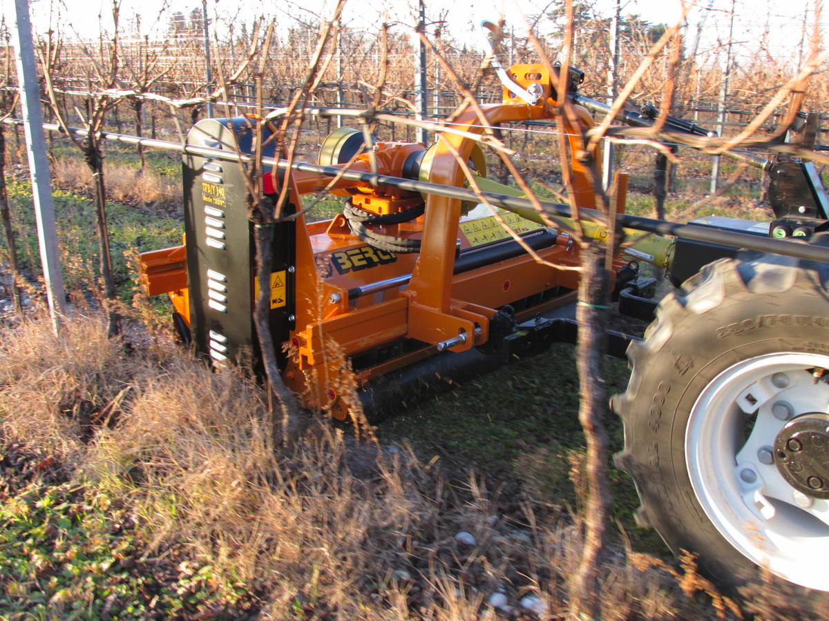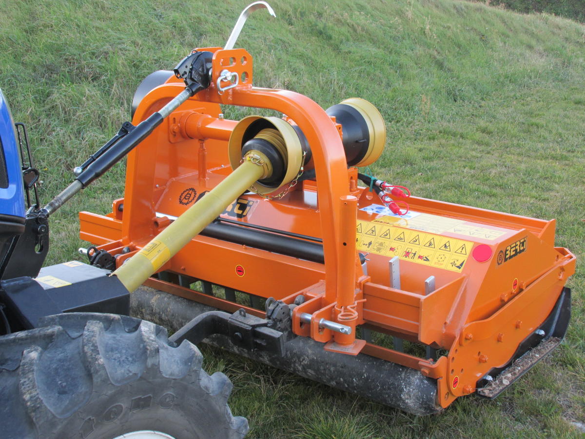 Traktor front hidraulikán, illetve megfordítható irányú traktorokon is használható szárzúzó. Szőlő és gyümölcsültetvény karbantartására, max. 8 cm átmérőjű ágak, gallyak, venyigék, fás és lágy szárú növények zúzására alkalmas. 40-110 LE teljesítményű traktorral használható, 140-220 cm munkaszélességben.