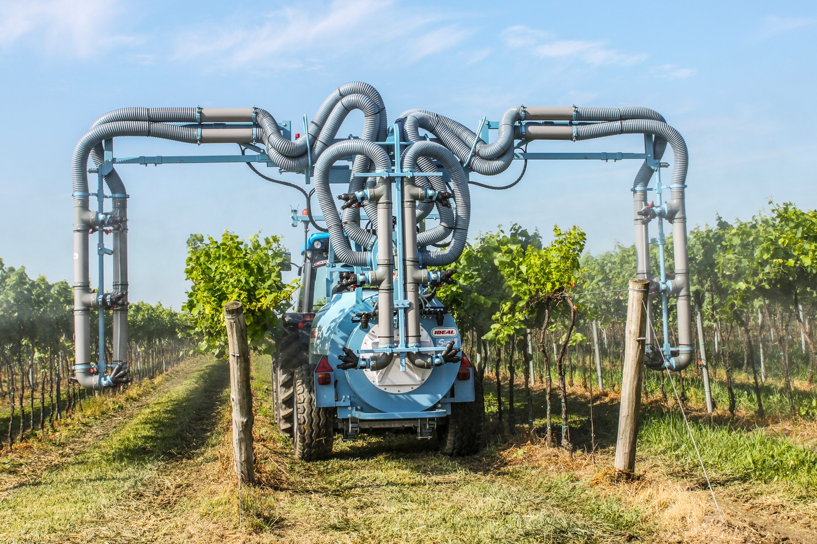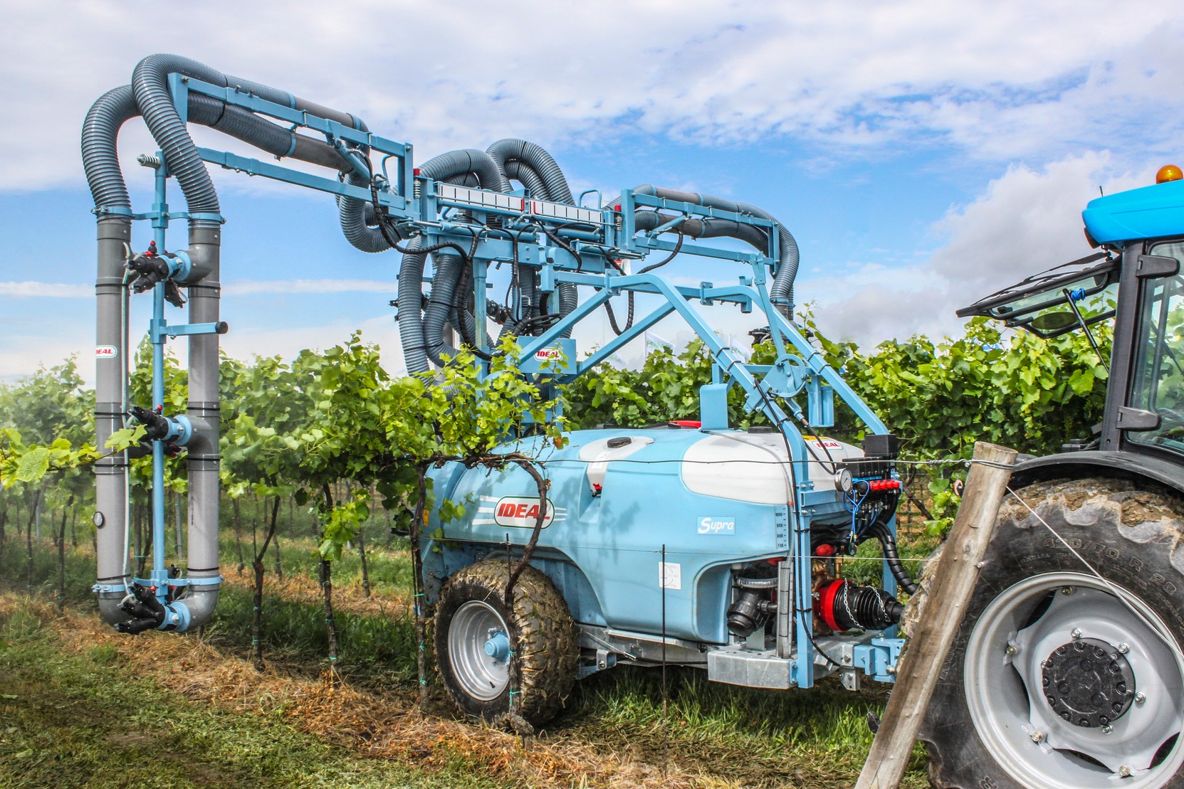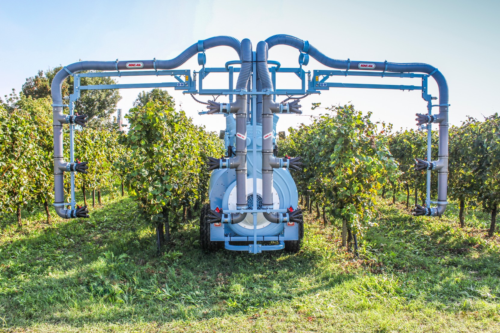 Alacsony nyomás, magas teljesítmény! Az IDEAL SUPRA permetezőgép kordonos szőlő ültetvényekben egymenetben 3 sor 2 egész és 2 fél sor kezelésére alkalmas. Mechanikus porlasztással, alacsony léfelhasználással dolgozik, (150-250 liter/ha).