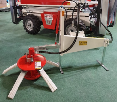 Egyoldalas hidraulikus sorápoló gép. Elérhető gallyseprő, pengés kasza és küllő kapás gyomirtó fejjel.