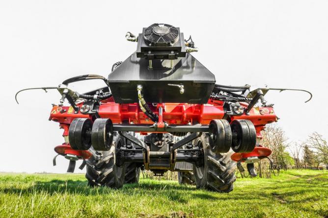 Elektrohidraulikus vezérlőrendszerrel traktor kabinból könnyedén irányítható. Támasztókerekek szépen lekövetik a talaj egyenletlenségét, nem rontva ezzel az elvégzett munka minőségét. A gépre számtalan különböző típusú és funkciójú művelőfej rögzíthető, amely szögben állítható, így dombos vagy teraszos terepen is működhet.