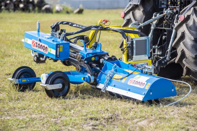 Zanon ITC F100 Oldalazó talajmaró Alkalmas gyümölcsös és szőlőültetvényekhez egyaránt. Az ITC megbízható, robusztus és sokoldalú, speciális gép, amely széleskörű felhasználást tesz lehetővé. Az ultraérzékeny érzékelőnek köszönhetően a munkaegység rendkívül gyors és pontos mozgásokkal megváltoztatja a helyzetét; ez lehetővé teszi a traktor számára, hogy nagyobb sebességgel mozogjon, és kiváló eredményeket biztosít bármilyen típusú talajon.