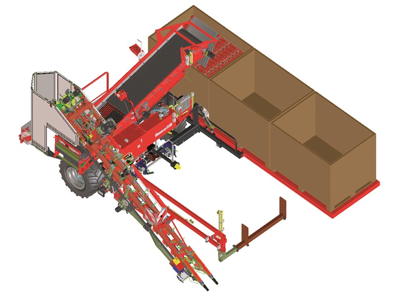 Alapfelszereltség részeként egy fix, három férőhelyes, felhajtható konténerplatform segíti a termék betárazását. A kereszt szállítószalag, a konténerplatform, a hidraulikus eséscsökkentő az opcionálisan kérhető válogató platformon lévő vezérlőről irányítható.