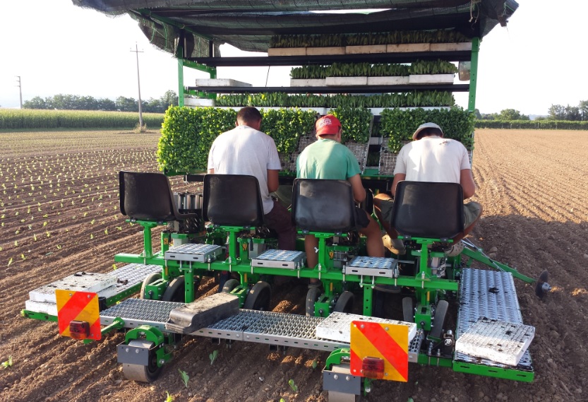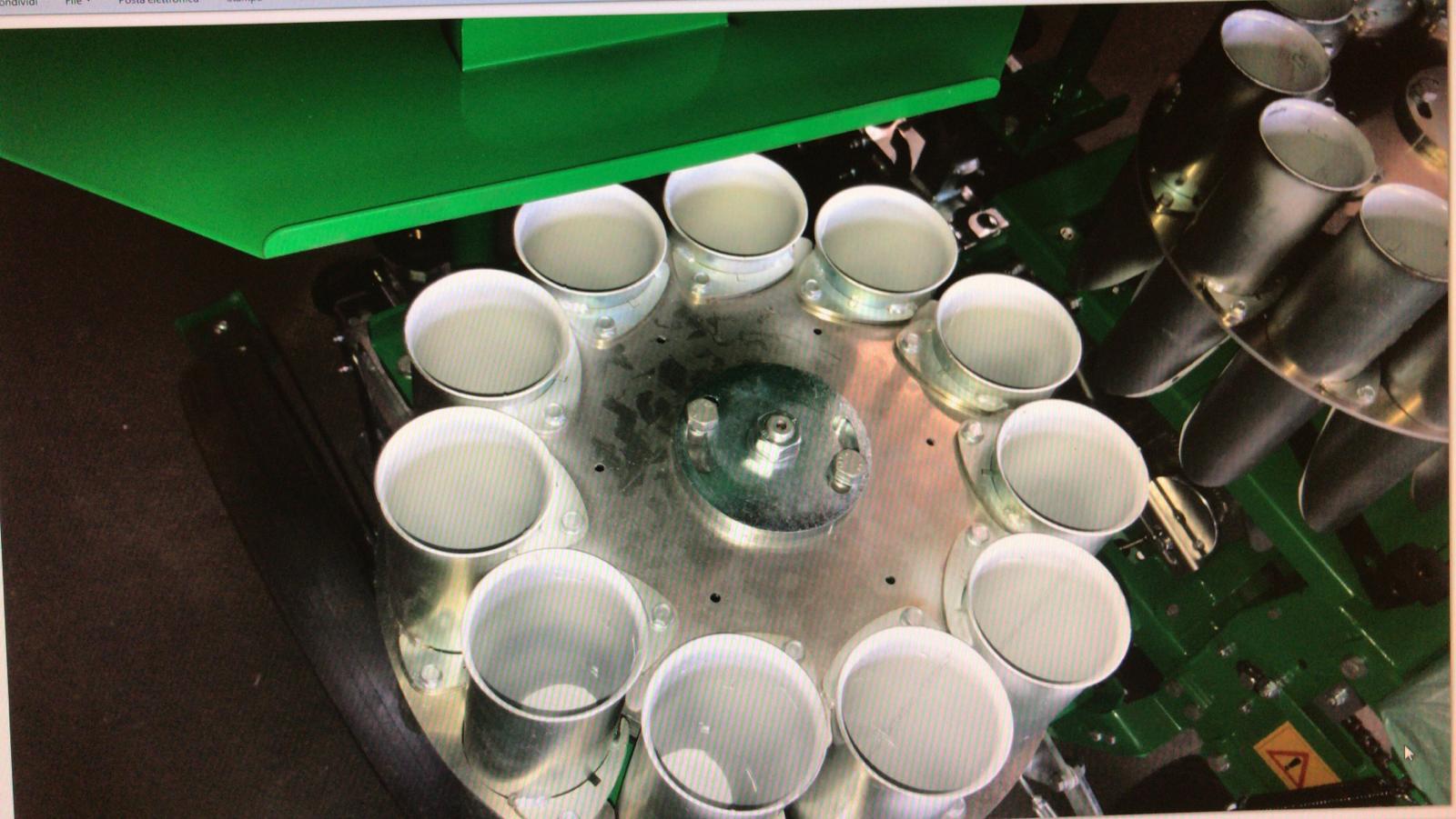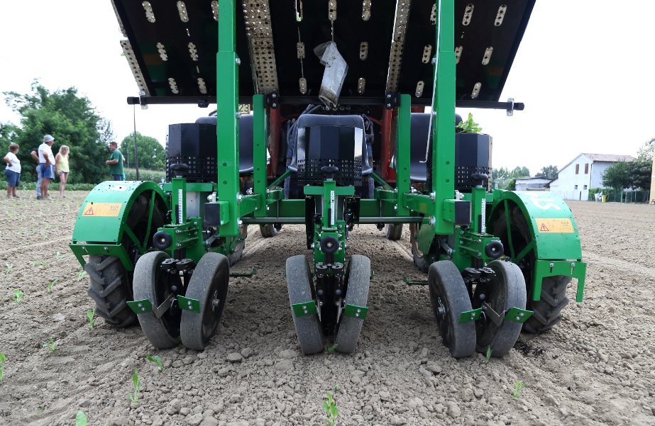 A SFOGGIA ST9 félautomata ültetőgép, amelyet keskeny, minimum 30 cm-es sorközi palántázásra terveztek. Az ültetési sebesség és a termelékenység növelése érdekében a soronként 9 csészés forgóadagolóval.